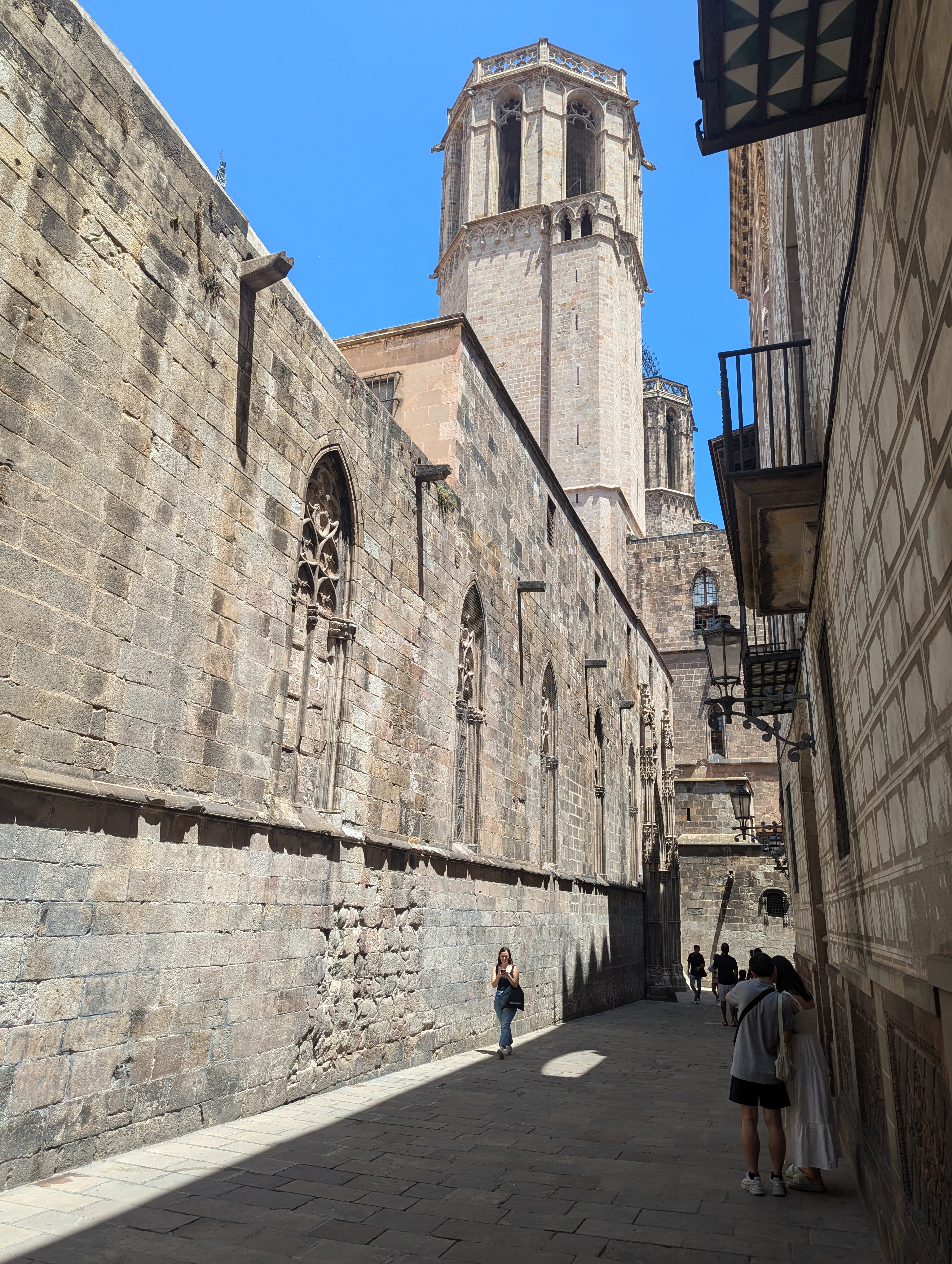 Espana ________________________________________________________________________________ A while back (man this has taken a while), I took a trip to Spain. It was important for many reasons, one of them being it was one of my first major vacations; I'd taken a trip earlier to Portugal in September 2023 that was far more leisurely, but this one was still quite massive. All told, we spent about two weeks between Barcelona and Madrid. Most of my interest was in the art museums. There are many other photos, but they aren't for you. Index ________________________________________________________________________________ - Barcelona [1.0] - Madrid [2.0] [1.0] Barcelona ________________________________________________________________________________ Technically, we started in Madrid; however, we almost immediately took a train to Barcelona to begin our vacation. So that's where we will start. Un callejón en BarcelonaCatedral de la Santa Creu i Santa Eulàlia
